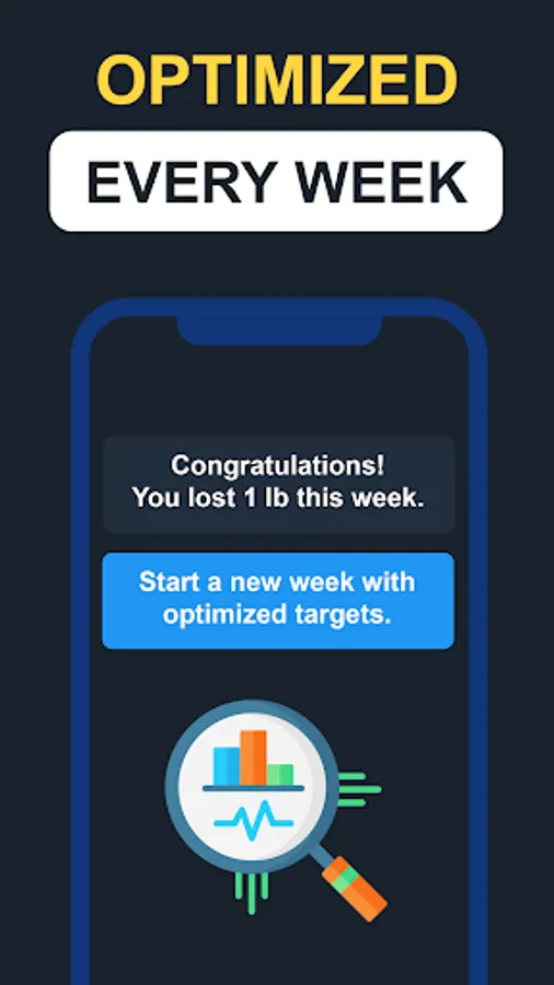 🔵 Weekly optimized calorie deficit and macronutrient targets for weight loss
