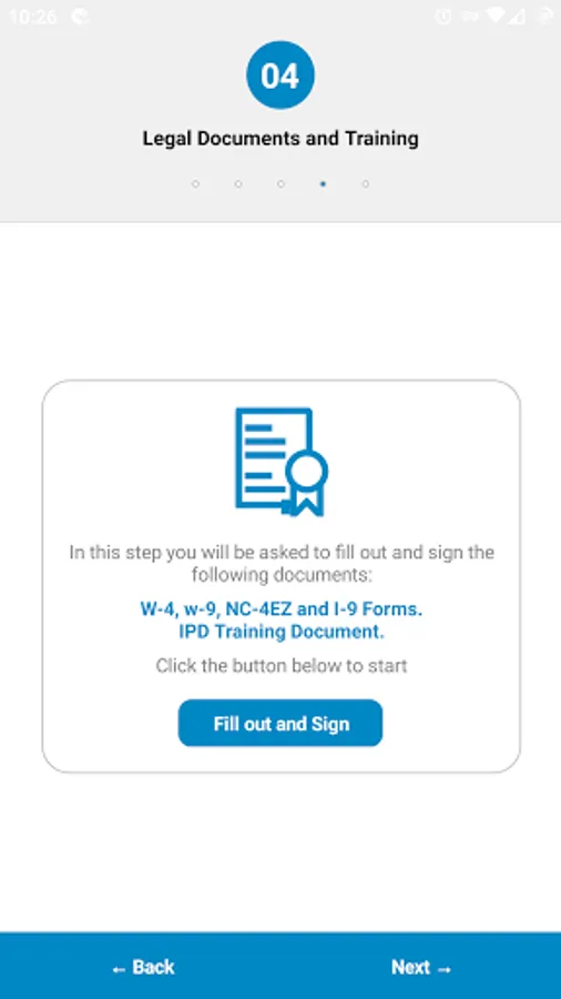 Step 4: Sign legal documents, at this step you will be redirected from inside the app to external document signing portal. your signing form will be ready for filling. and after filling, you will be redirected again to add your signature.