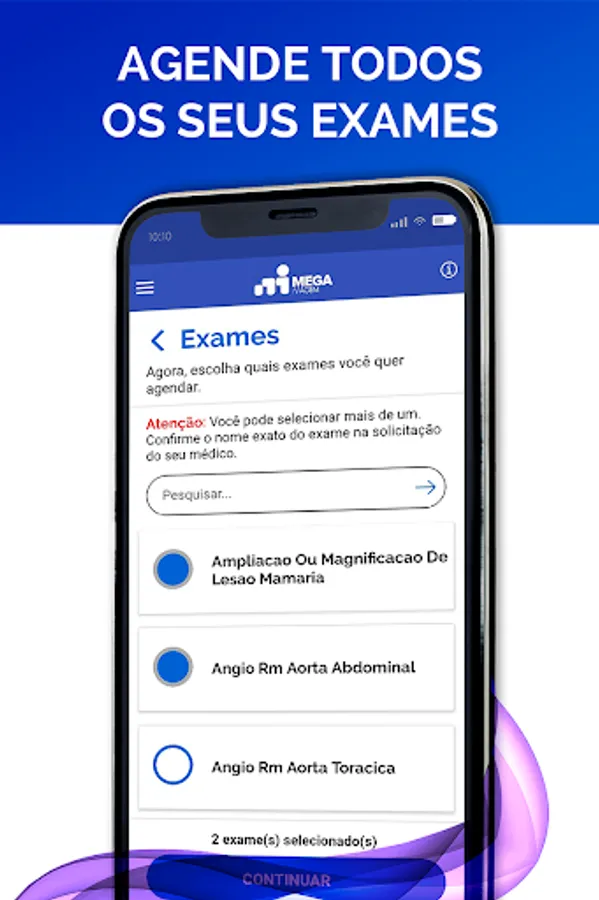 Application aimed at users to schedule their exams at Mega Imagem clinics