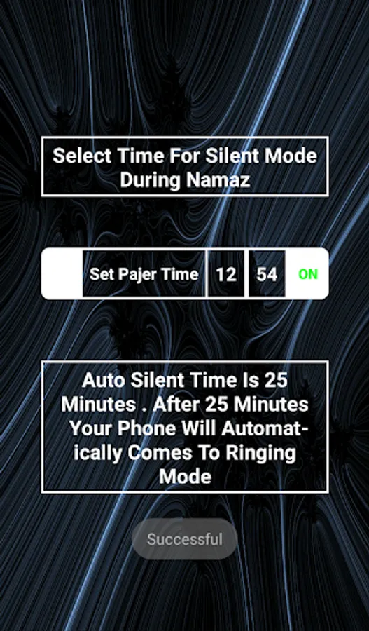 It is simple app every one can use it easily.In this app you can set prayer times then the app will automatically silent in the selected time for 25 minutes . After 25 minutes the phone will come to normal mode automatically.Changing in the prayer time is just by selecting the new time . if you want to start the time for silent mode . then set time 5-10