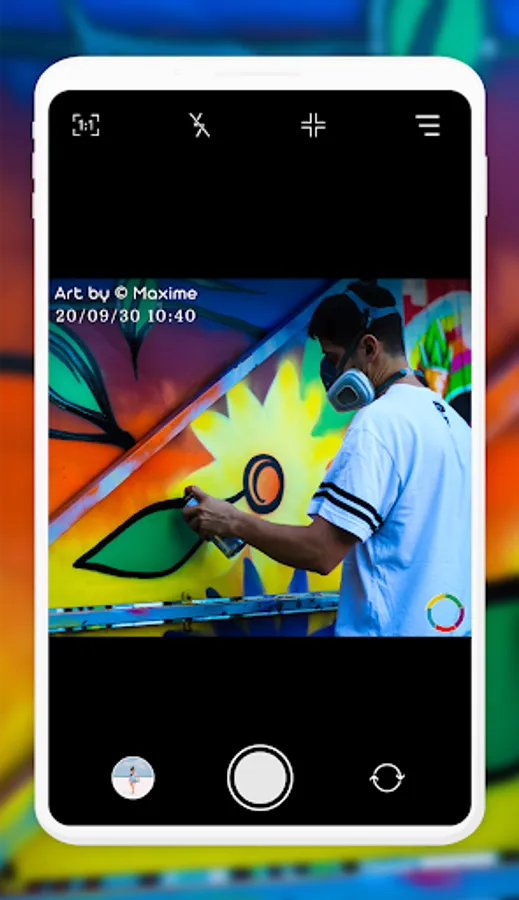 ➽ When you open Application, You will get Custom camera of Auto stamper to click photos.