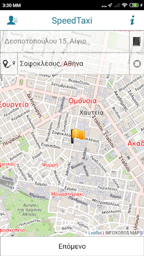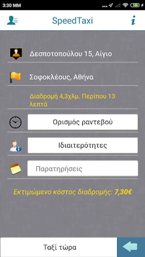 The SpeedTaxi application for quickly and safely calling a taxi for Attica.