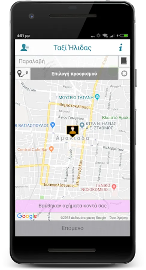 The application of Hermes Taxi for the fast and secure taxi call to Amaliada.
