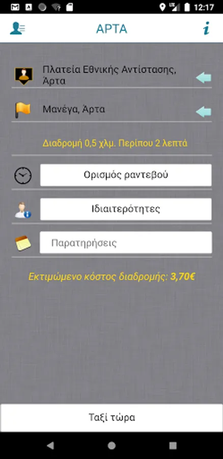 The application of Radio Taxi Arta for the fast and safe taxi call for Arta.