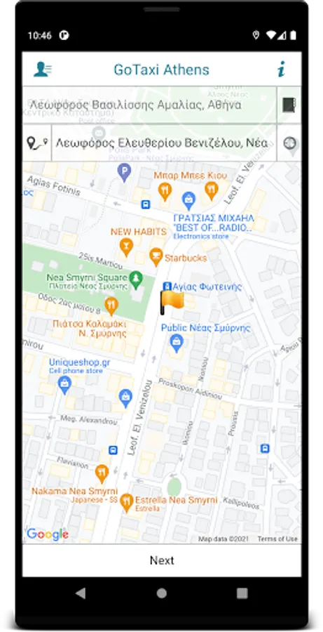 GoTaxi Athens is not responsible for any kind of errors during the process of booking a ride through the map interface.