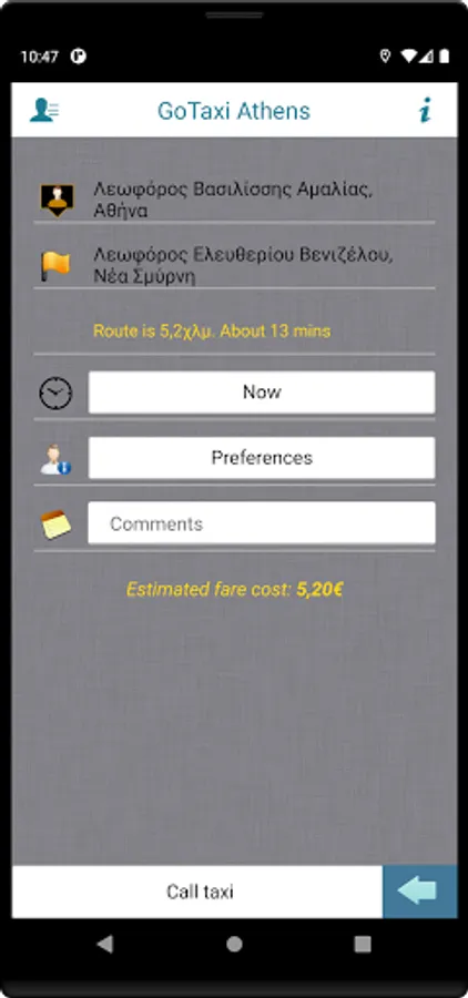 GoTaxi Athens application for a quick and safe taxi ride in all of Athens.