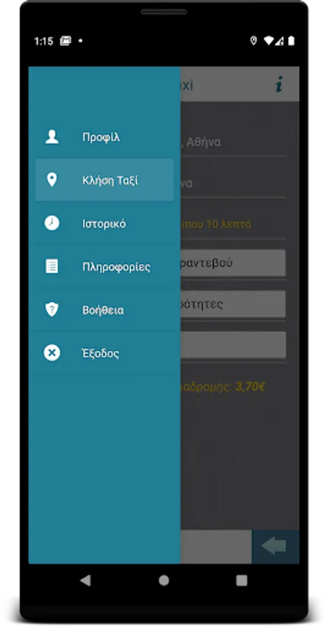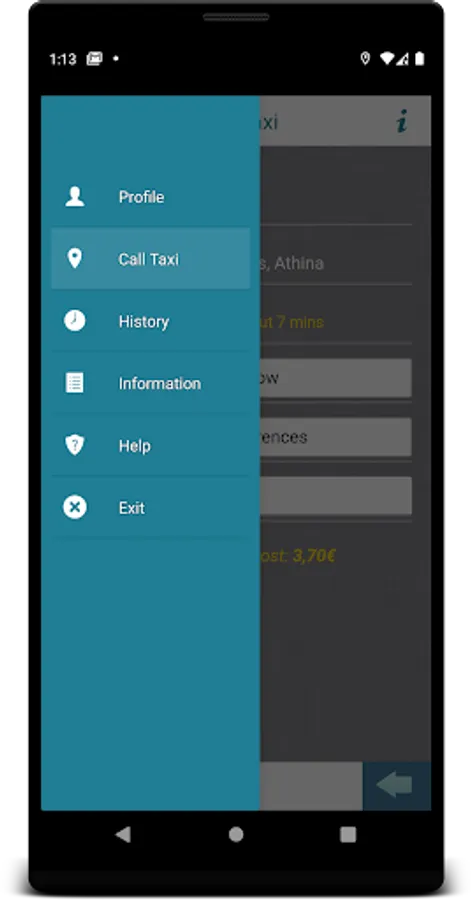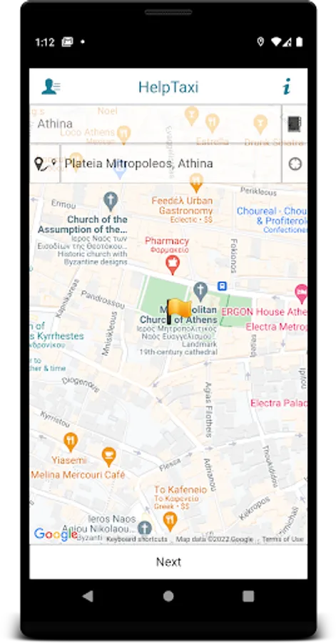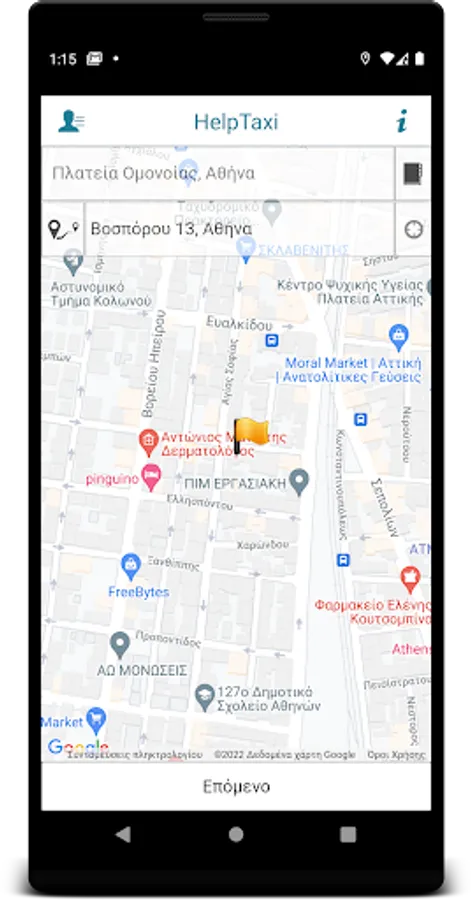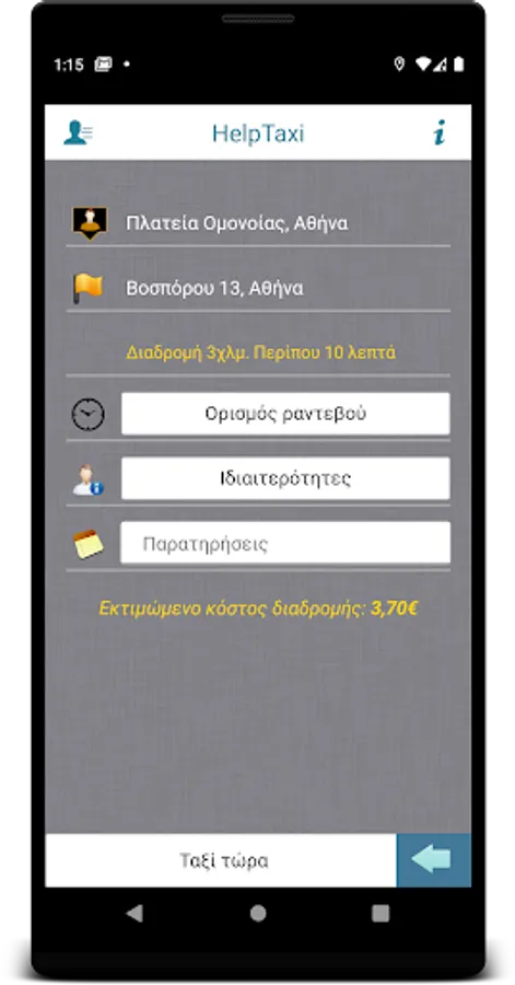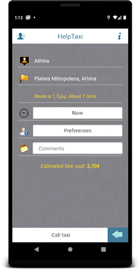 The HelpTaxi application for fast and safe taxi calling to Athens.