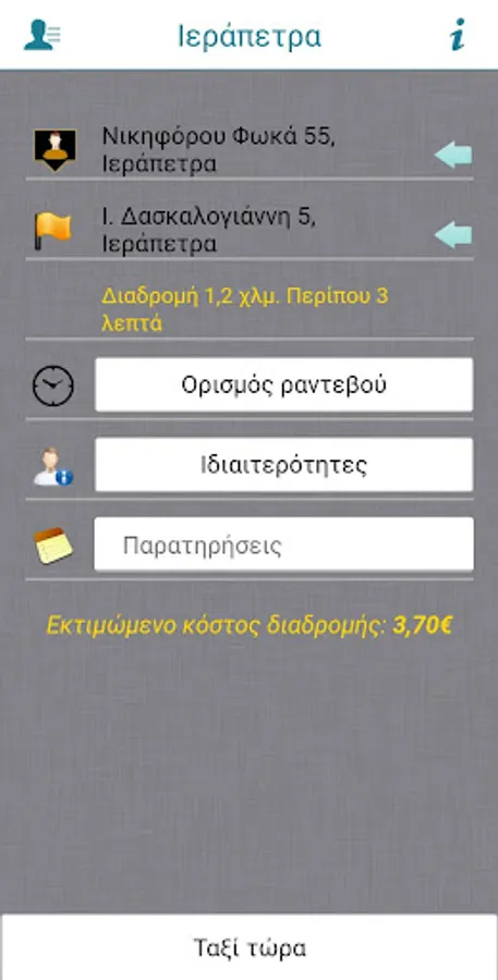 The application of Iatrapetra Radio Taxi for the fast and safe taxi call for Ierapetra.
