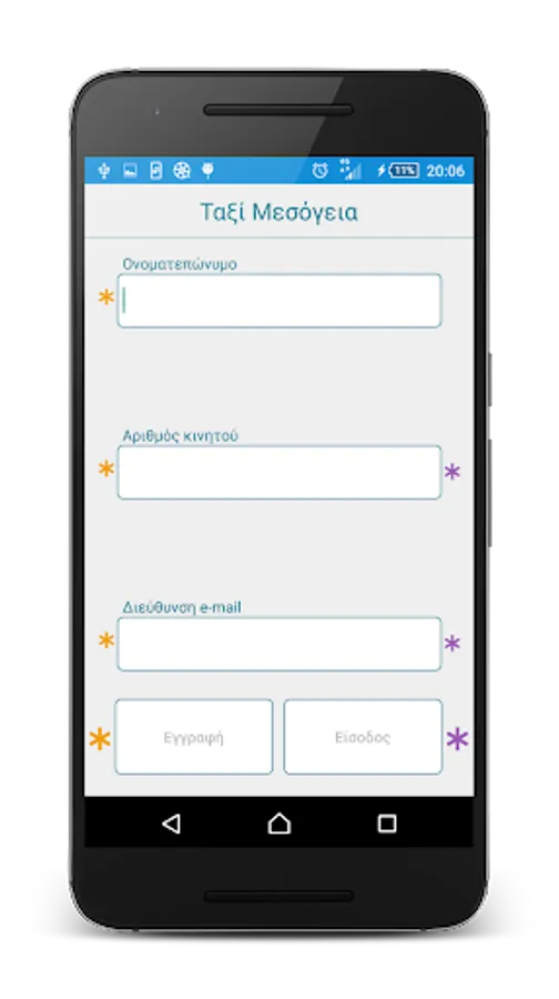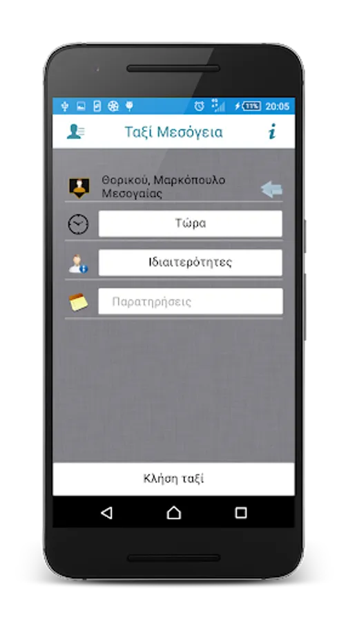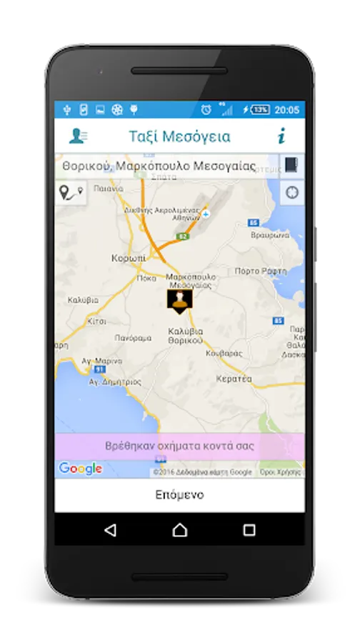 The application of Taxi Mesogion for quick and secure taxi call Mesogeia Attica.