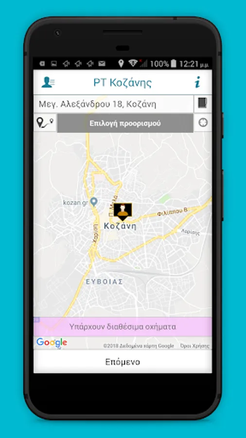 The implementation of Radiotaxi Kozani for the fast and secure taxi call to Kozani.