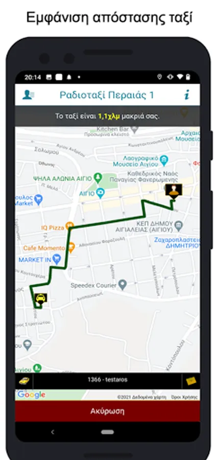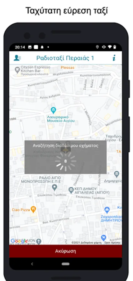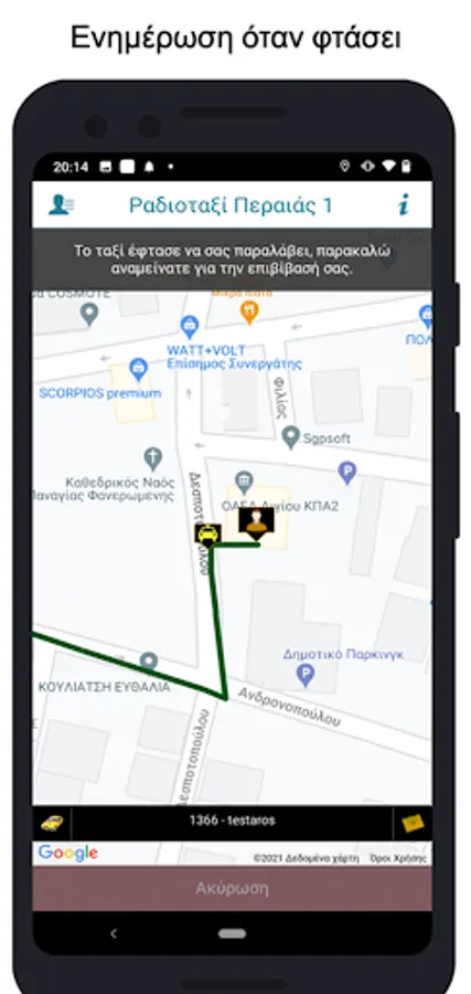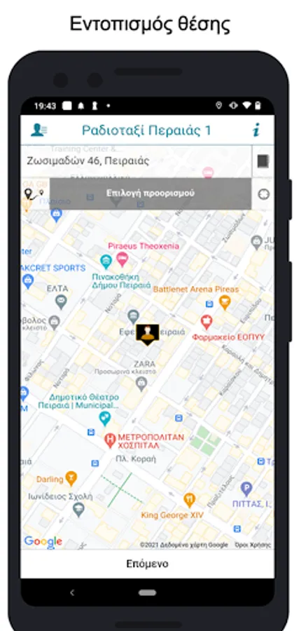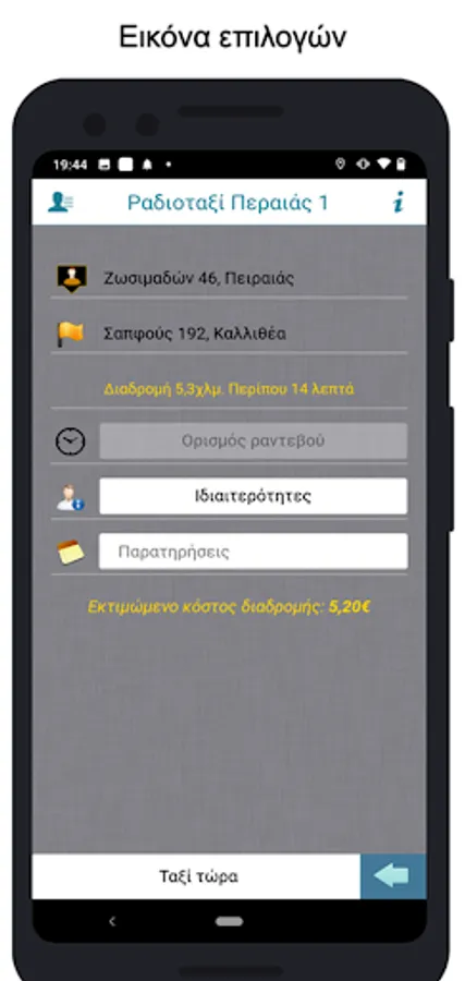 The TaxiNet application of RadioTaxi P1 for a quick and safe taxi ride in all of Athens and Attica.