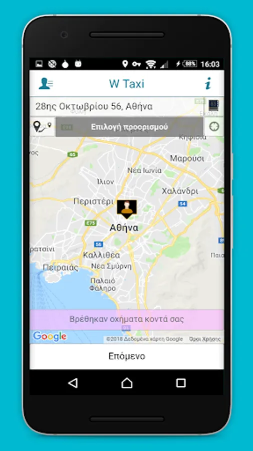 The application of wTaxi for fast and safe taxi to Athens.