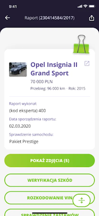 Thanks to our service, you will get to know the actual condition of the car and gain a basis for negotiating the price. We will protect you from buying a car after a serious accident, which poses a risk to the driver. In the report you can find the full history of the car about its origin, repairs and collisions. When checking cars, we use a procedure that includes over 350 control points. You will see the car inside and out thanks to the full photographic documentation made by the Expert. You gain an additional argument to consider when making a decision, you are not guided solely by the emotions or pressure of the seller.