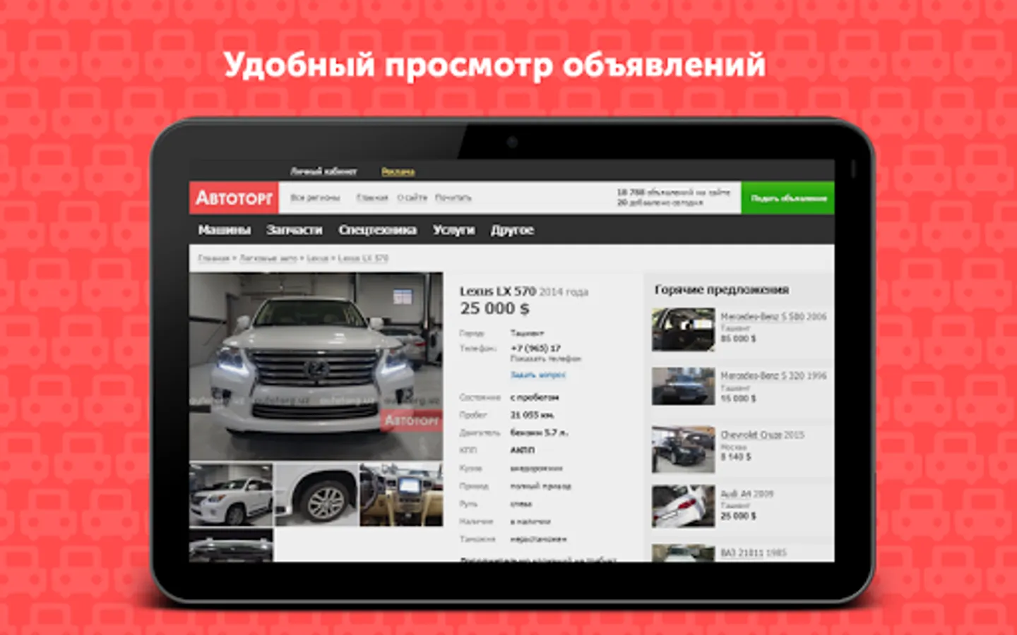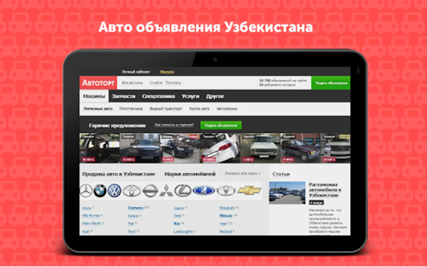 We offer you a large database of car sales in Uzbekistan, where everyone can find for themselves the best deal from companies and private individuals. We make sure to make you as comfortable as possible in the application of Uzbekistan car market, and you just got all the necessary information.