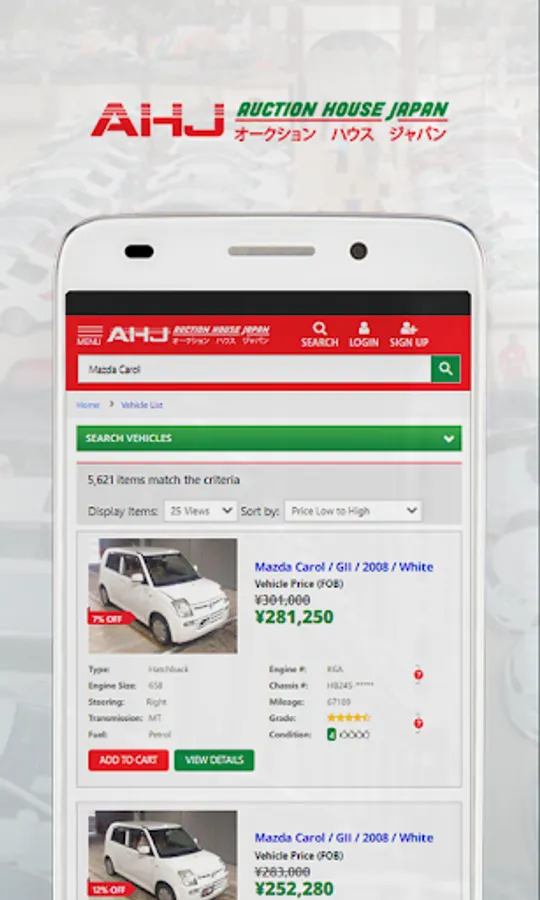 AHJ is the optimum car purchasing platform that lets buyers around the globe purchase and import premium quality vehicles, directly from Japan. Browse through online collection of more than 145,000 vehicles and select your favorite used car from Japan. Just choose your desired vehicle and let AHJ take care of the shipment and documentation-related troubles for you.