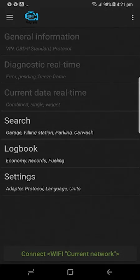 ● Reads real-time engine and vehicle OBD2 parameters PIDs