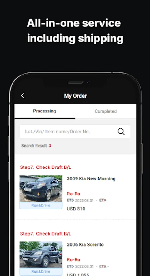 4. Once you win, select the shipping option for the vehicle. You can arrange anything from cutting to disassembly with us. Just ask..