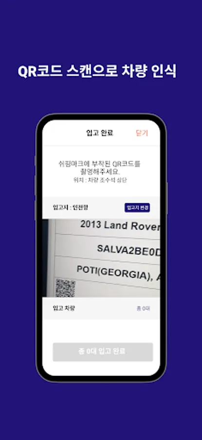 Winy Logis supports logistics management services through QR code scanning. Depending on the user's authority, you can use necessary functions in the field, such as completion of warehousing, registration photo inquiry, and vehicle inquiry.