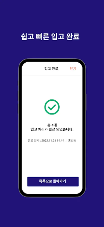 Supports warehousing vehicle confirmation and batch warehousing completion processing through QR code scanning.