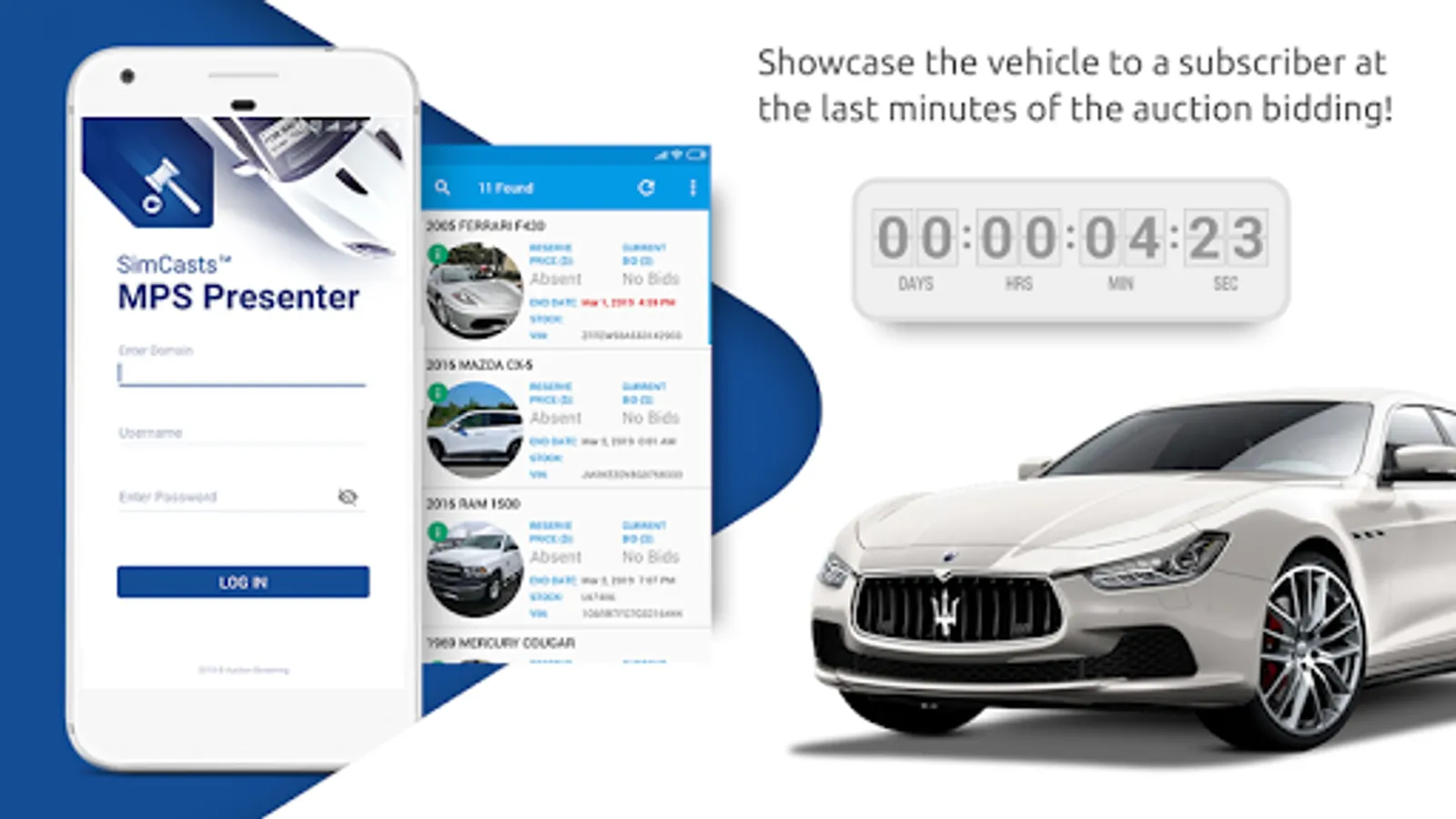 Enjoy the power of the Autoxloo mobile SimCasts™ MPS Presenter application allowing you to showcase the vehicle to a subscriber at the last minutes of the auction bidding!
