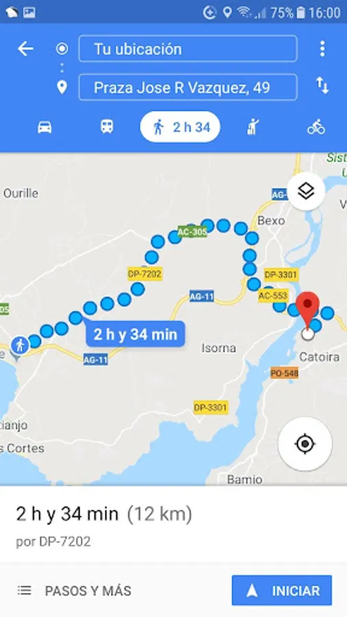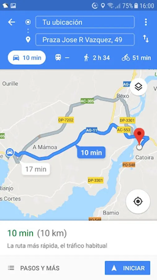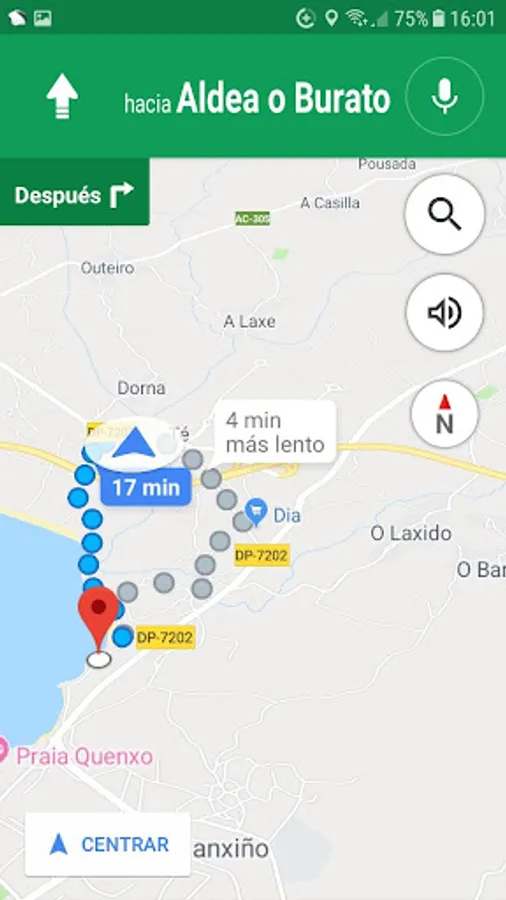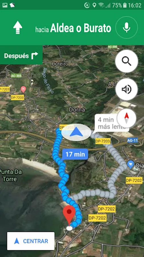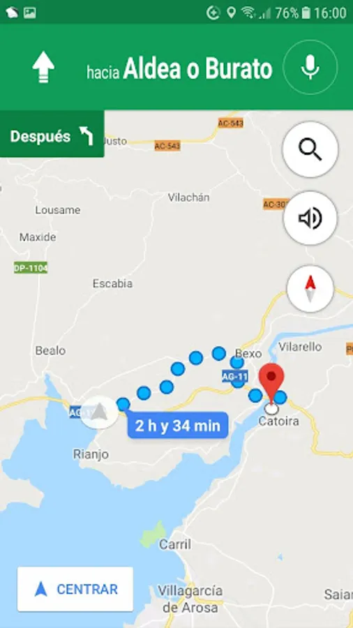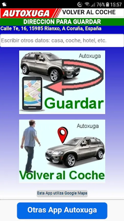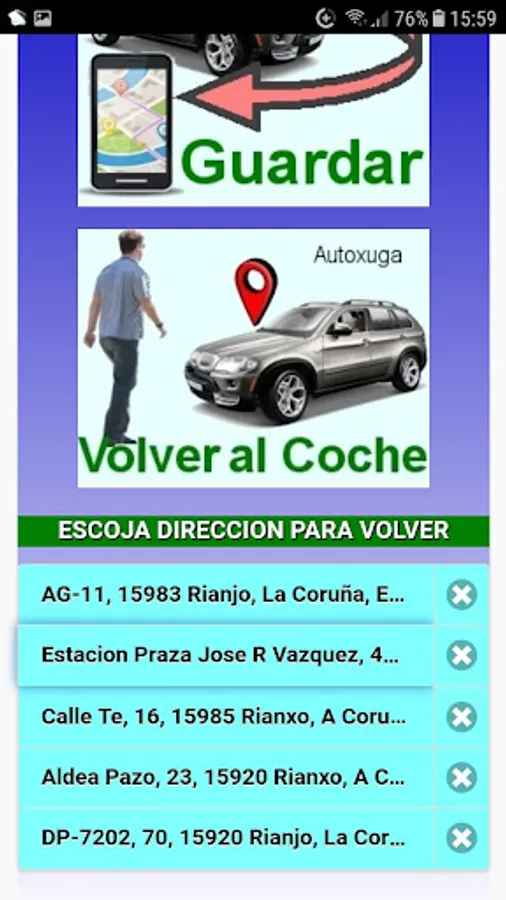 * VOLVER AL COCHE: Pressing this button shows all the addresses that are stored in the Application and pressing the chosen Google Maps shows the route to go