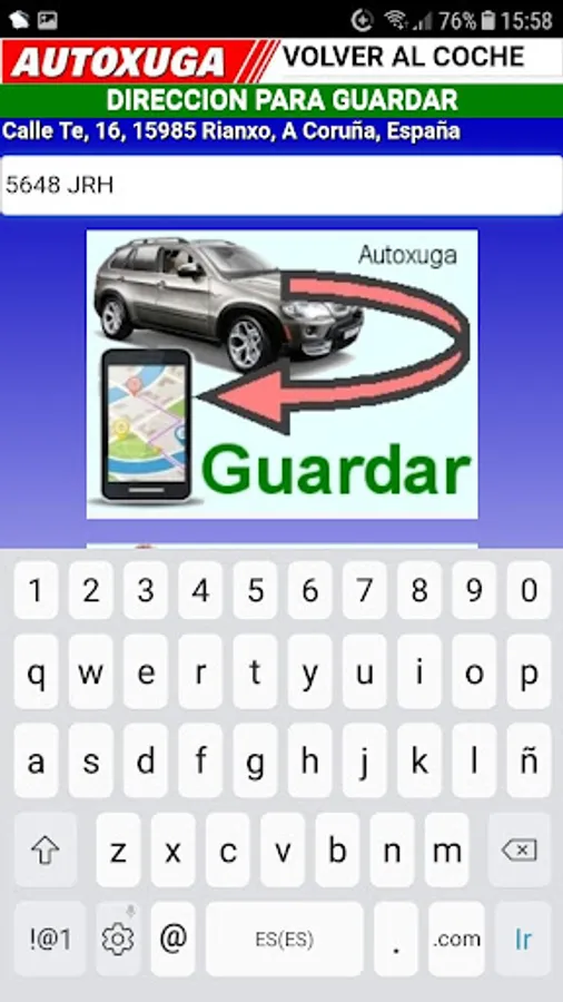 * GUARDAR: It serves to store the position in which the mobile phone is at that moment, allowing to write a text with registration of the car, hotel,