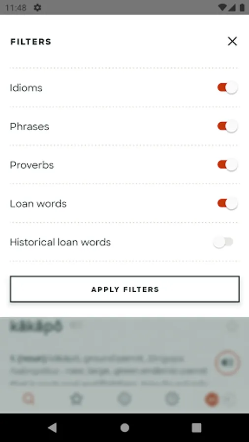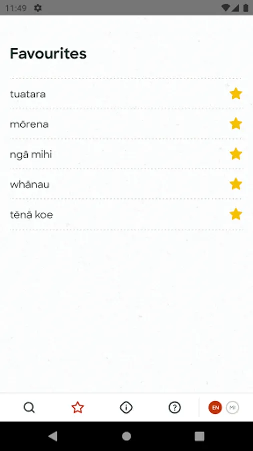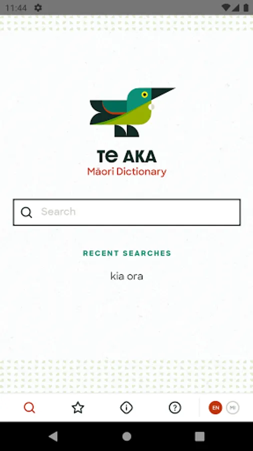 Te Aka is a Māori language dictionary that is easy to use by searching for Māori or English words. It includes the ability to filter search results, and to save definitions to a Favourites list. There are currently over 24,000 Māori headword entries in the database, which is being added to over time. An offline dictionary has also been included when internet connectivity is not available.