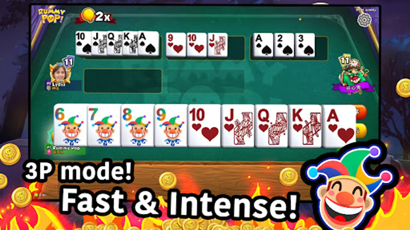 Rummy Pop 3P is our special version of Rummy for 3 people.