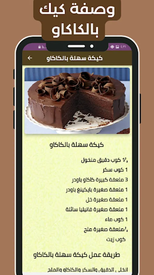 The application contains the most beautiful and quick and easy cake recipes with cocoa