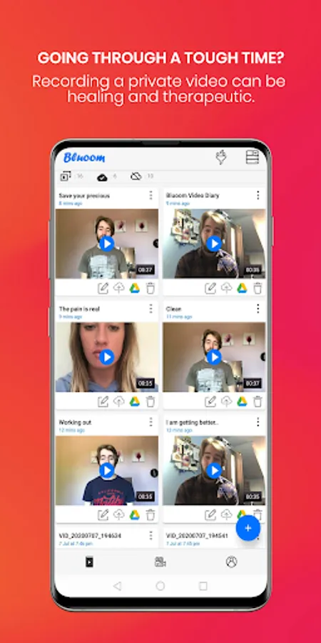 Going through some pain? Then Bluoom can be your pain journal. Record videos everyday about what you are going through and heal when you watch them back.