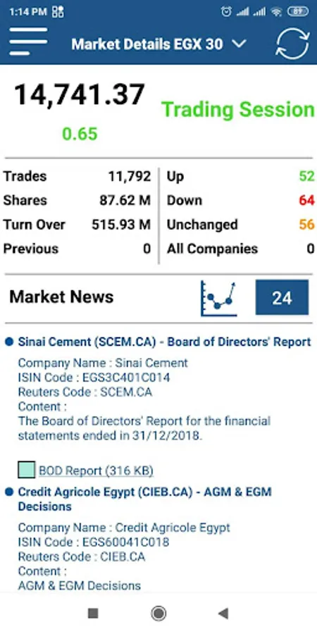 MetaStox App provides a real-time update of the Egyptian Stock Market, its design to provide for investors and traders an instantaneous update of Egypt Stocks with Comfortable, Intuitive, and Easy to use interface. In addition, it provides the traders with all the information needed to be able to take trading decisions quickly, and comfortably.