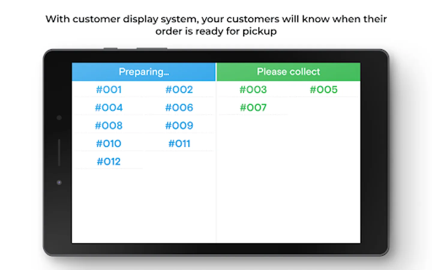 OrderLord CDS - Customer display system - is an interactive customer-facing screen app, that displays the status of orders - preparing and ready to pickup orders.