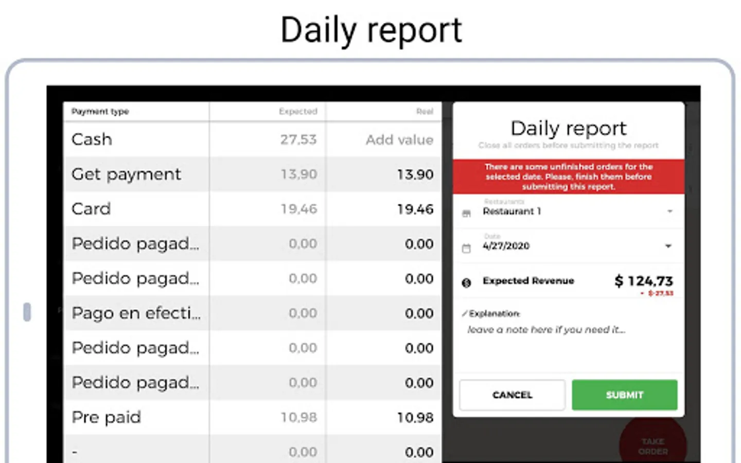 • Printing labels, receipts, and kitchen receipts for orders - customize printing depending on the order type, by restaurants or brands, the number of reprints, opening the cash drawer, cutting of the paper, and many others...