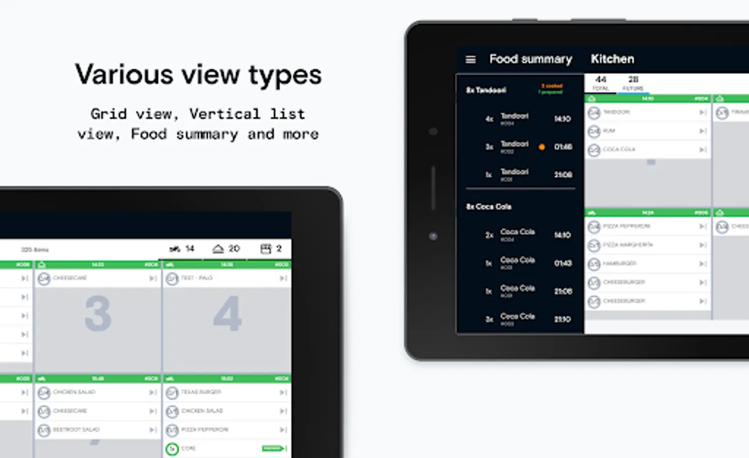 • Multiple layout types - Vertical list, Quick collect panel, Food summary, Grid view, Columns view, Grid view with categories
