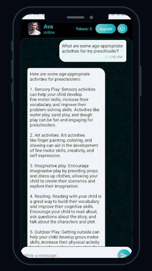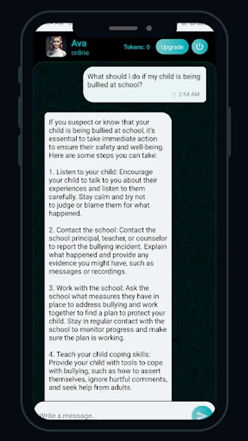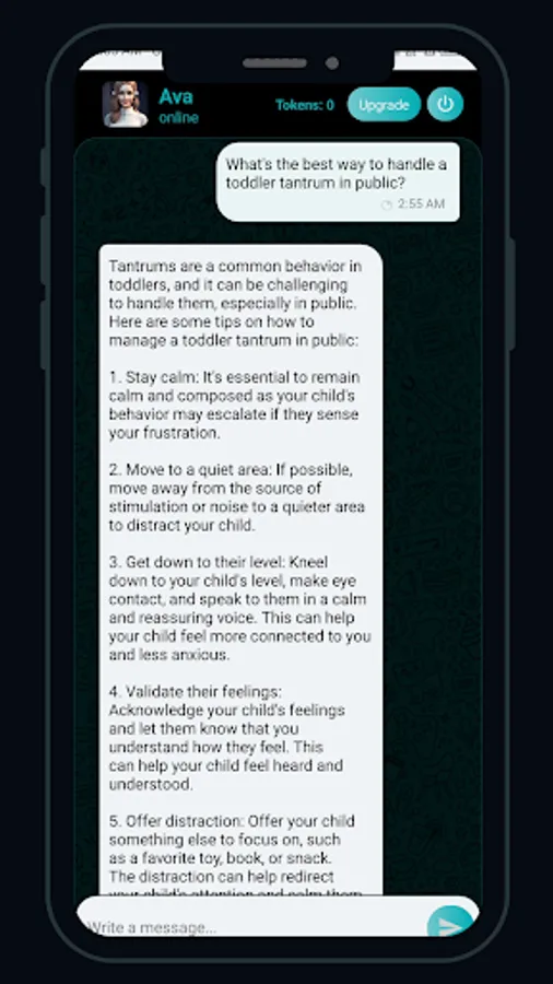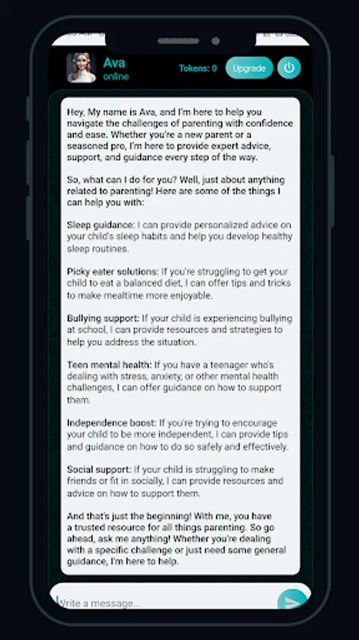 Introducing Ava AI: Child Care Parenting App - the ultimate companion for parents seeking expert guidance and assistance in the realm of parenting. If you are a parent in need of professional advice and support, look no further than Ava AI: Child Care Parenting App. With its advanced chat functionality, this app allows users to engage in meaningful conversations with Ava AI, a knowledgeable virtual assistant specializing in all aspects of parenting.