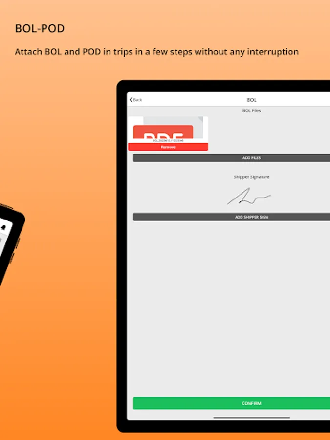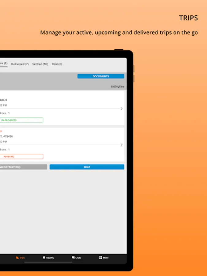 instructions & alerts, update job status, exchange documents (BOL/POD) and