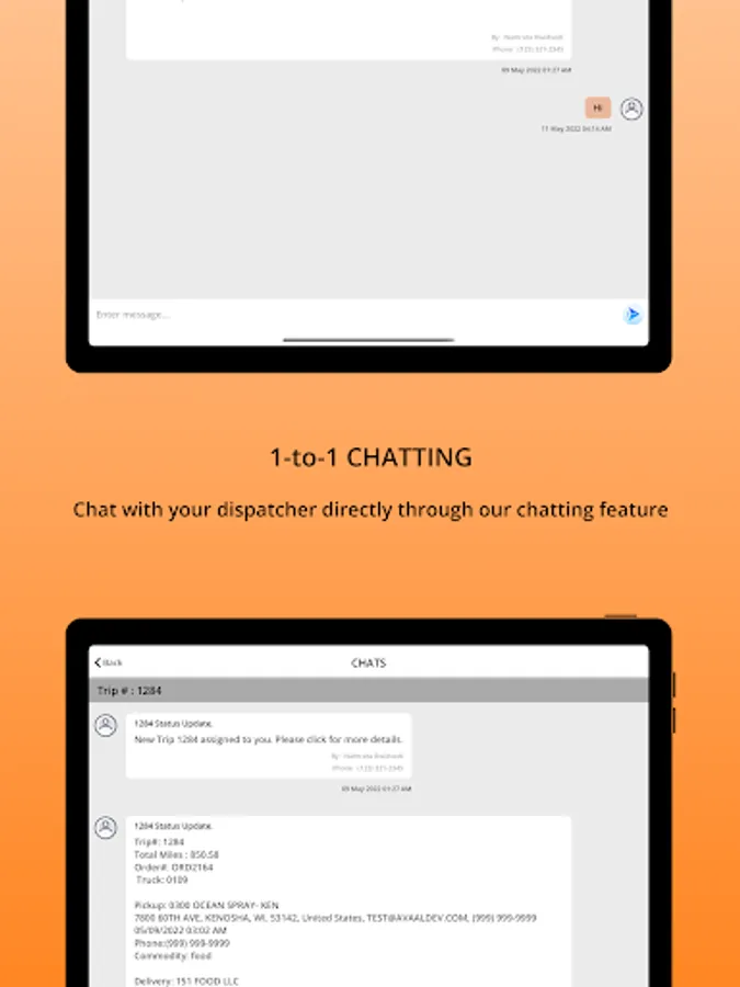 drivers using the built-in chat feature and stay up to date with the driver's live