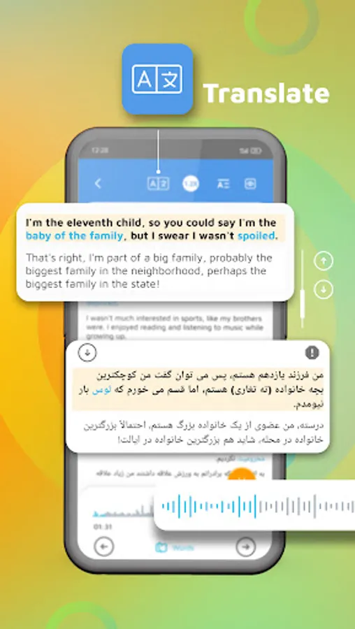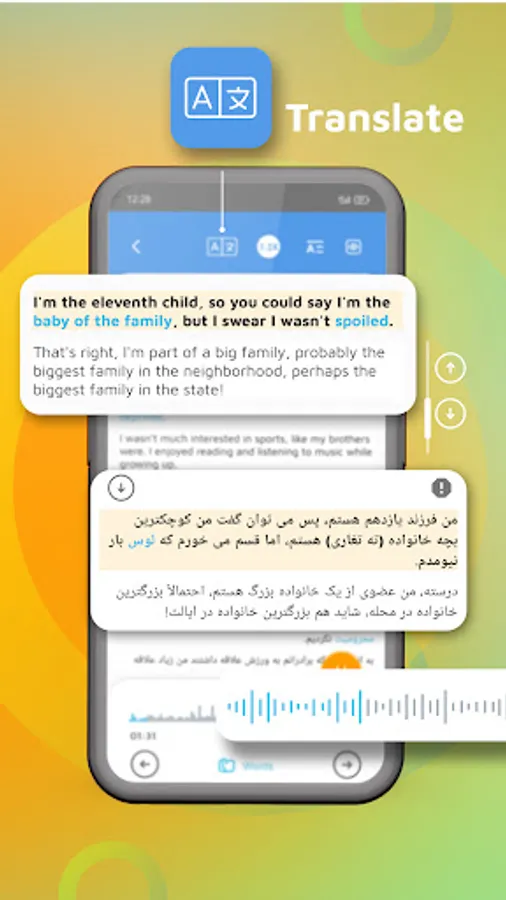 • Fluent Farsi translation of the original text, enabling offline podcast listening
