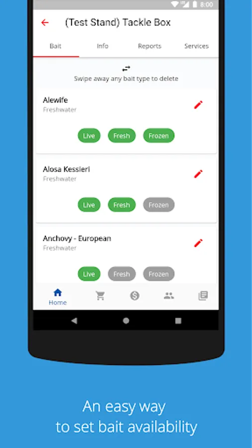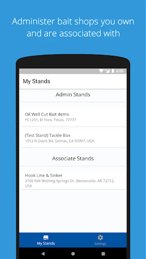 The BaitFinder Admin app is used by bait stands to publish information to the BaitFinder app (user). These two apps working together to solve one of the most frustrating parts of fishing...finding and ensuring you can get the bait you want, when you need it. At the same time the combination of these two apps allow Bait Stands to draw anglers to their stand through advertising products and services and publishing fishing reports.