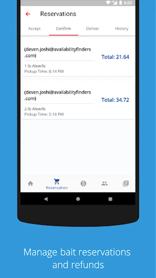 * Enables bait stands the option to accept reservations with pre-payment---The process accounts for the uncertainty of bait delivery to ensure customer satisfaction
