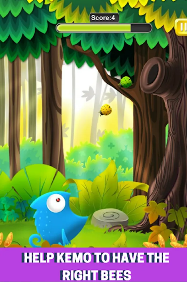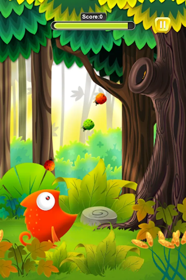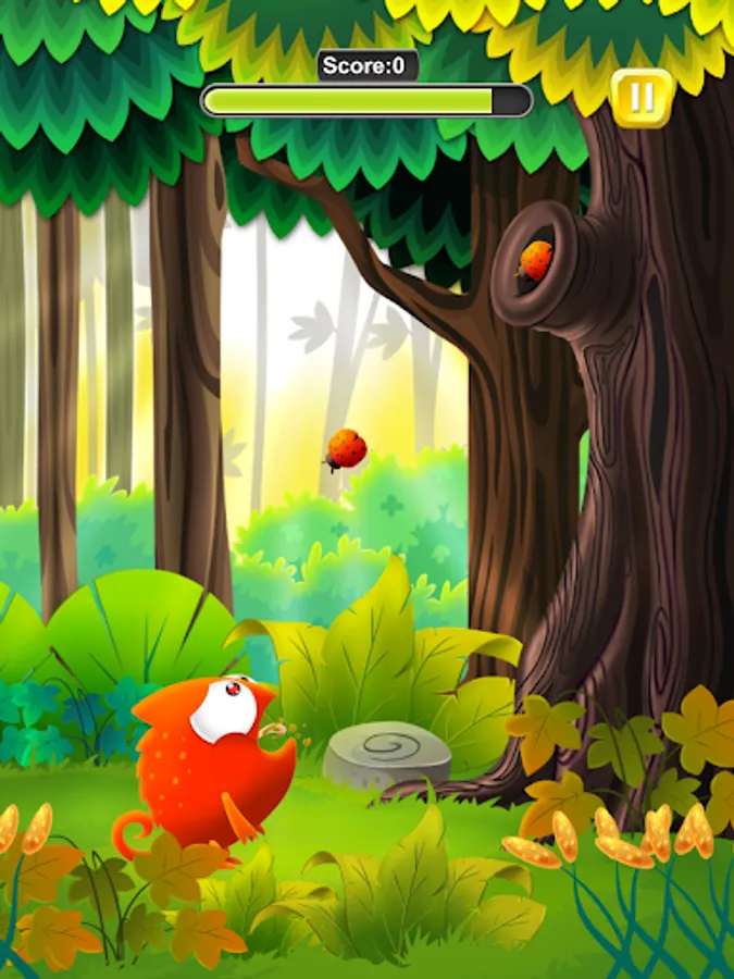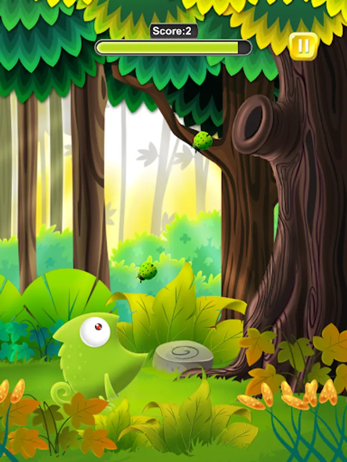 You play a chameleon, Chemo, who is very picky about what it eats. When a swarm of delicious bugs falling off a tree hollow and tempting Chemo, control its mouth with just one tap. Be careful and eat only bugs of the same colour as the chameleon! Score one point for each bug it swallows. So, be a bug detector, guys.