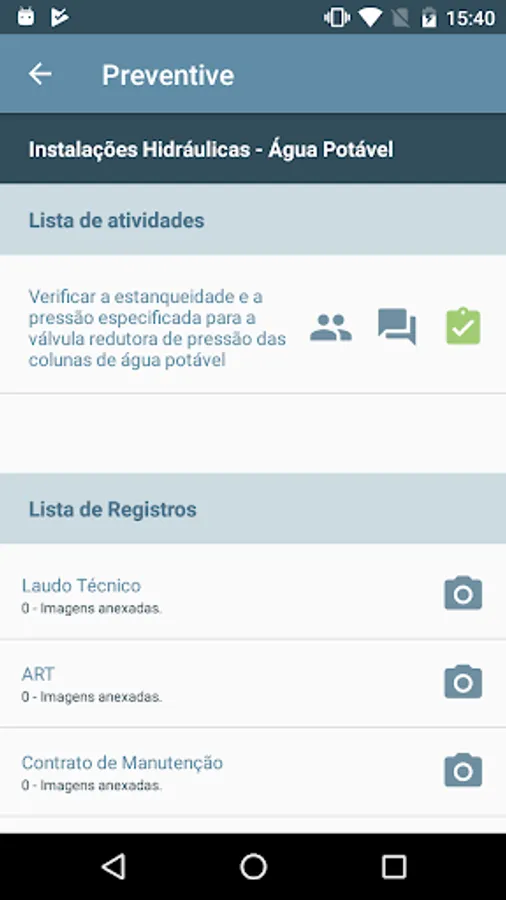 This application is a tool aimed at manufacturers, liquidators, administrators and condominium owners as a whole. Its format and content, based on standards, research and experiences, aims to guide and monitor the preventive and corrective actions regarding good engineering building maintenance.