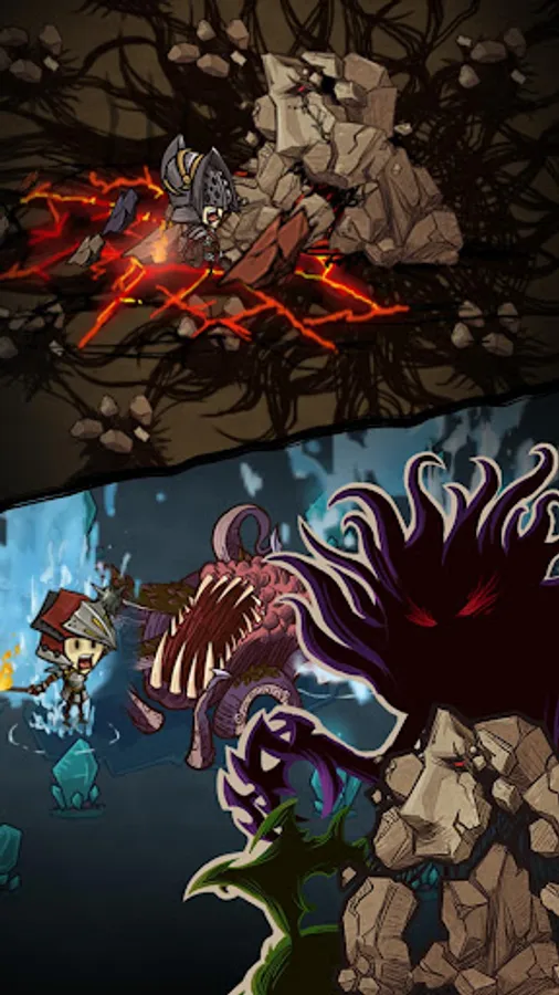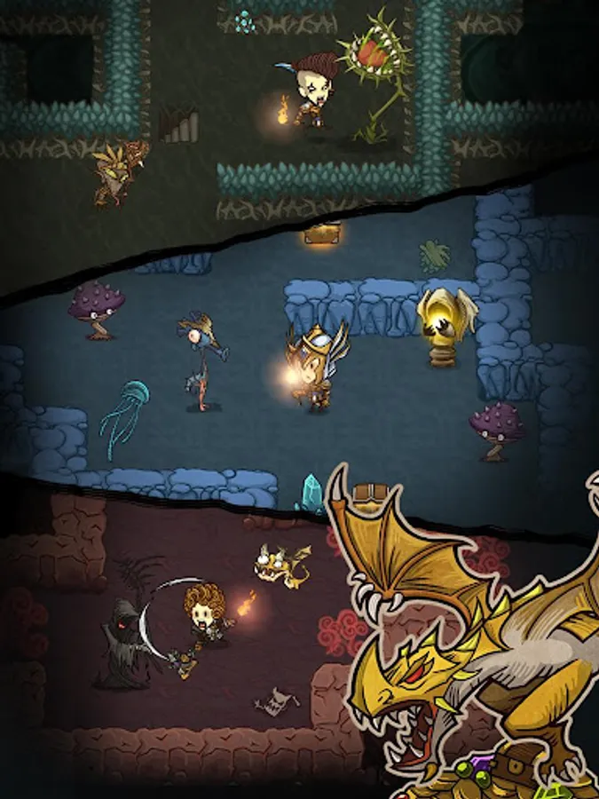 Find ways to defeat them, learn different skills, acquire powerful equipment, challenge the evil leader and unlock the endless secrets buried in the caves ......