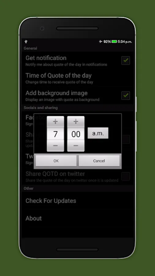 ✔ Quote of the day at a time you set.