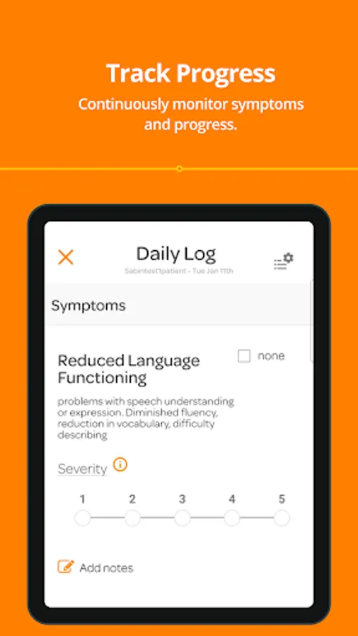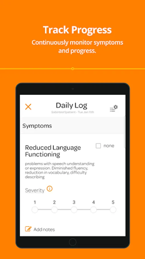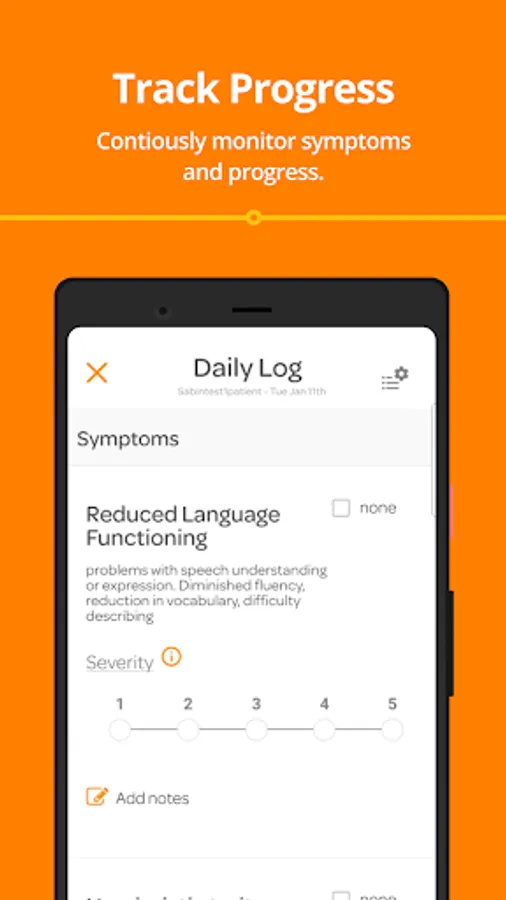 MEASURE SYMPTOMS - Measure each symptom with Trayt’s proprietary rating scale that measures individual symptoms based on intensity, frequency, and duration in a common language that is shared with your clinicians and therapists.