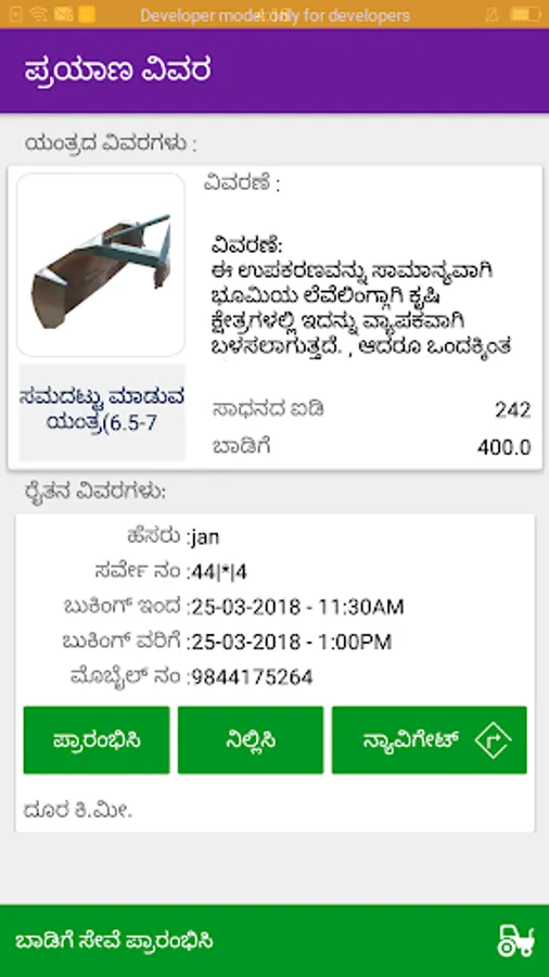 Agriculture Department the Government of Karnataka has decided to establish Custom Hire Service Centre (CHSC) at hobli-level, with an objective to assist the small and marginal farmers to provide machineries at their door steps. “Krushi Yantradhaare Driver App” app gives Transparency to driver to complete the bookings and reach to their specific farm for which the booking has been done.