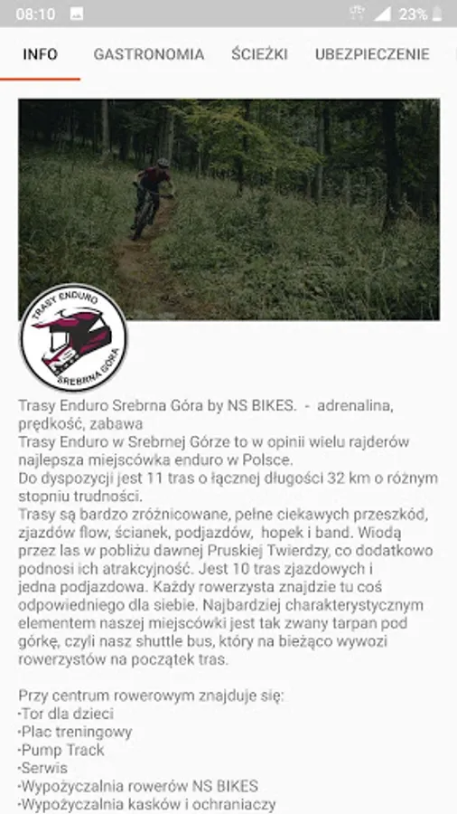 An app for cyclists visiting Enduro Srebrna Góra Routes.