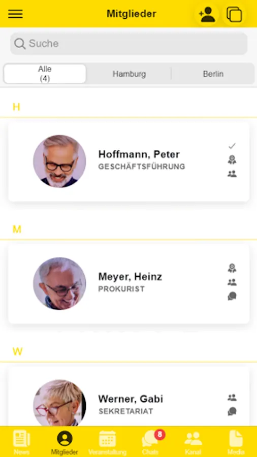 Regardless of whether it is an appointment service, preparing the work of our working groups or planning and implementing training, this app enables information to be exchanged quickly at any time.