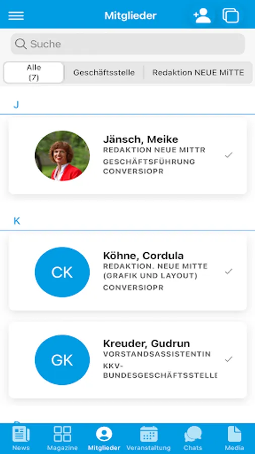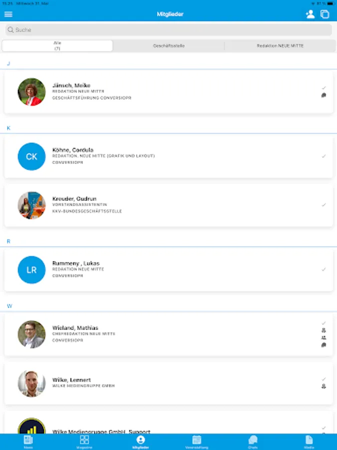 Organize your association life fully digitally: communication of news and member magazines, management of all member data, creation of project groups, organization of events with acceptances and cancellations, individual, group and organizational chat, provision of documents, public photo pinboard and much more.. .