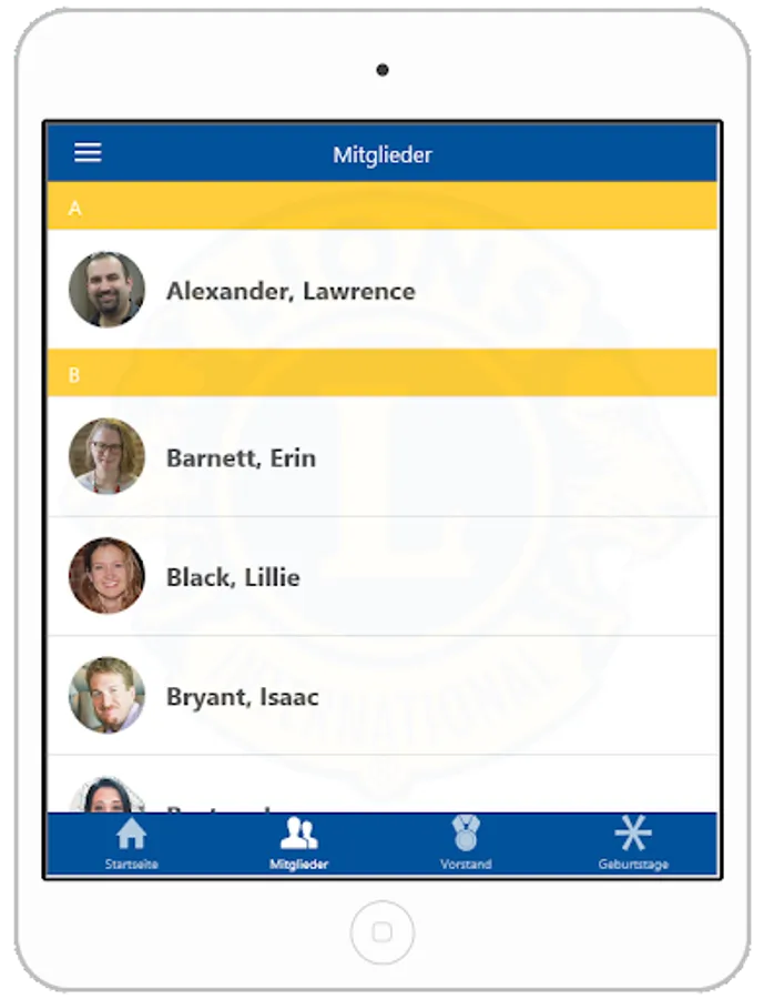 (2) Add additional Club members or import the Excel file with member data from the Lions membership management http://www.lionsapp.de here. Afterwards, each member can log in with the email address from the membership data.